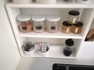 ガスコンロの頻繁に使う調味料棚には