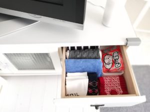 テレビボードの引き出しも