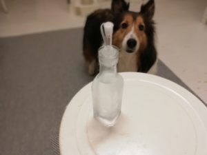 目の消毒には2%溶液を使いますが、犬に使うので1%溶液にして使っています。