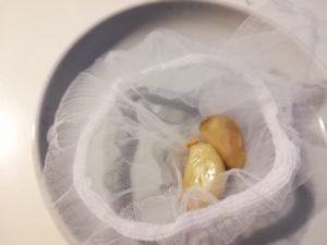 古いストッキングもガーゼもなかったので、台所で使っている目の細かい排水溝ネットを使いました。