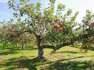 リンゴ狩りにちなんで、真っ赤な毛糸のベレー帽を編みました。