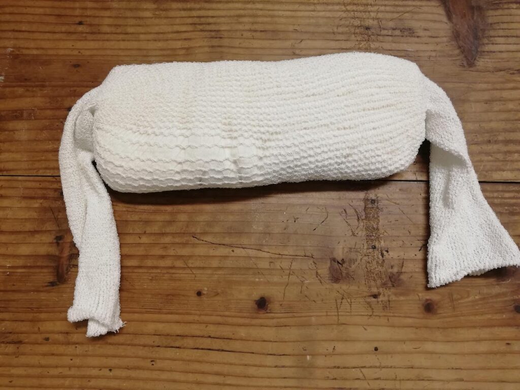 作り方は「タオルを折って、ネット包帯に入れるだけ」です。
